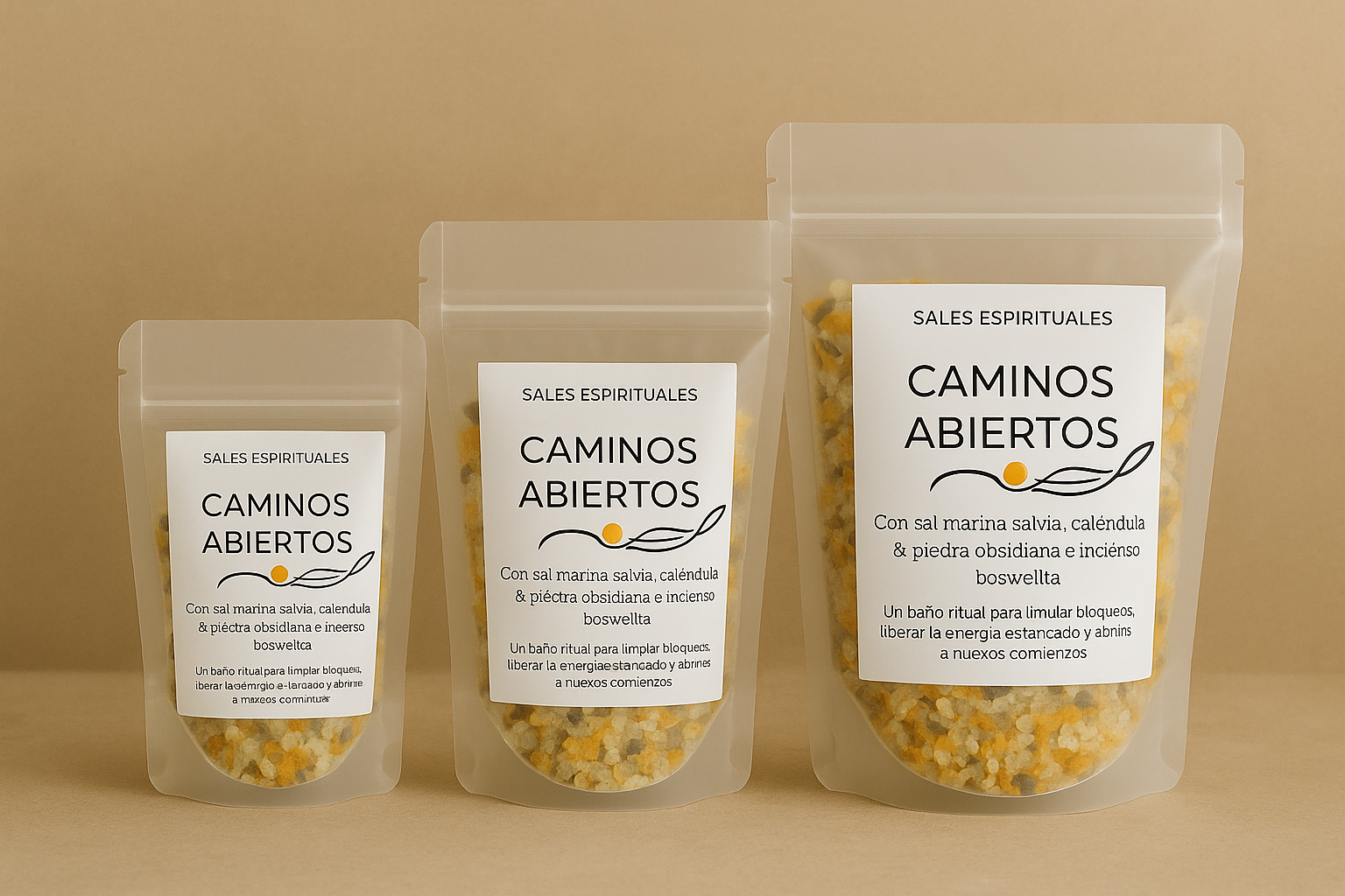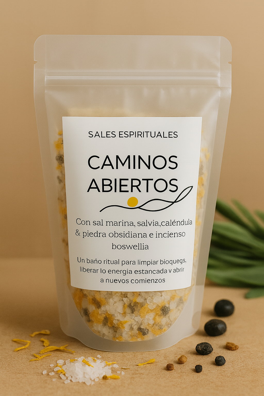 • 🌾 Sal marina y sales Epsom, que limpian y equilibran la energía bloqueada.